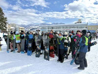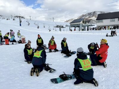 実習2日目は、スノーボードを中心にゲレンデでの実習を行いました。