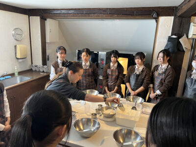最後のレッスンはスコーン作りに挑戦しました。スコーン特有のサクッとした軽い食感を出すためのポイントは、生地を混ぜすぎないことです。材料や調理器具、作り方を英語で学びながら、一人あたり5〜6個のスコーンを丁寧に仕上げました。レシピも配布され、自宅でも再現して楽しめることでしょう。