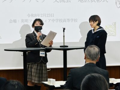 2月23日(月祝)に桜華インターアクトクラブは、英明フロンティア中学校・高等学校で開催された国際ロータリー第2580地区インターアクト合同活動ロータリーファミリー交流会およびインターアクター高校3年生の地区合同表彰式に参加しました。